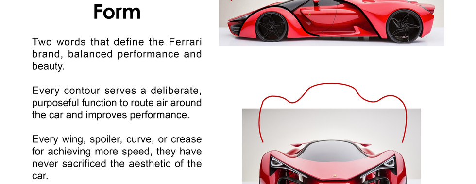 angles. The main colour is also the representative colour of Ferrari, red. Material is polished plastic that mimics the smooth appearance of the Ferrari.